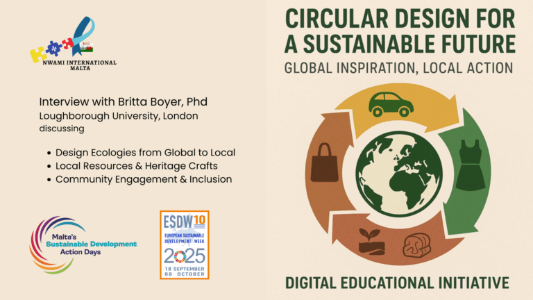 Part 2: “Designing Tomorrow Together – SDGs in Action Designing Tomorrow Together is NWAMI International Malta’s digital flagship initiative for ESDW 2025, showcasing how design as culture and circular practice